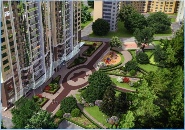 - Безопасность и комфорт. Обратите внимание на освещение территории, пешеходные маршруты, детские площадки и организацию парковки.